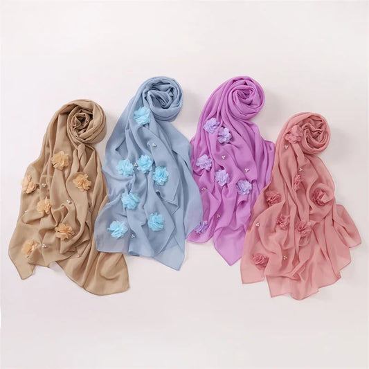 Luxury Stitch Diamond Floral Bubble Chiffon Hijab