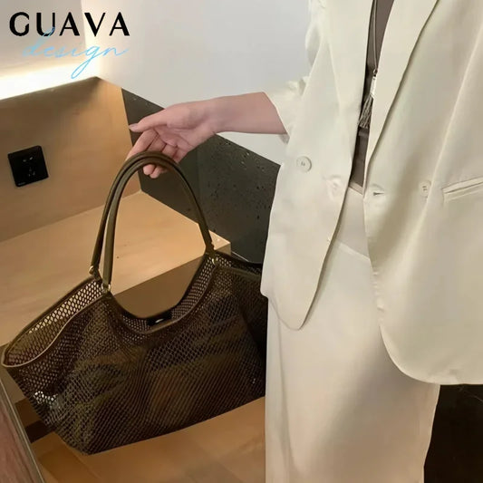 Mesh Beach Tote Foldable Bag With Inside Pocket